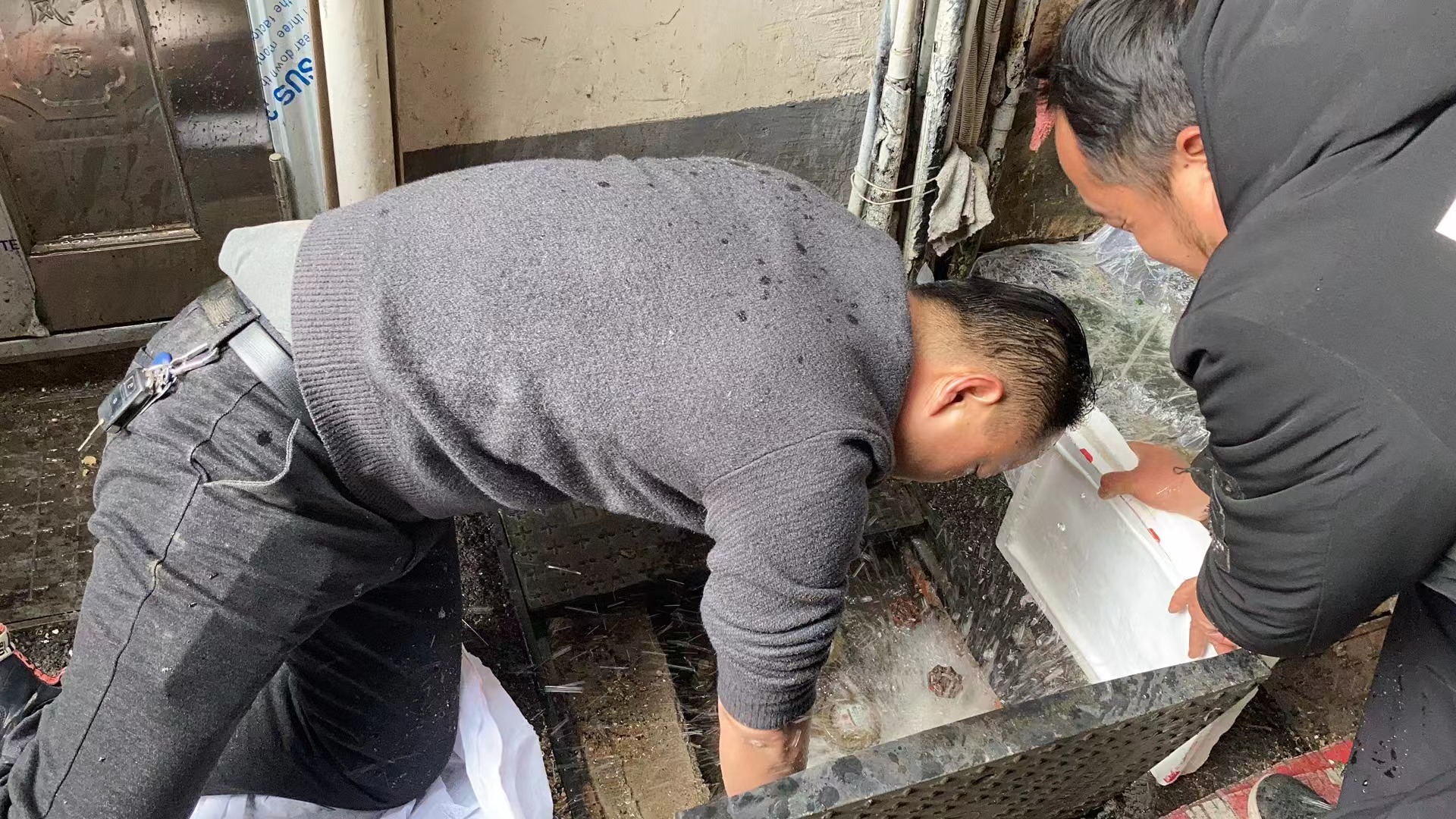 與此同時,客戶服務(wù)中心的搶修人員在小區(qū)幫助用戶解凍通水,為了便于操作,搶修人員不戴手套跪在已經(jīng)上凍的表井池旁伸進冰冷水中進行維修,雙手凍得通紅,渾身直打顫,絕大多數(shù)人搶修人員的手、腳都凍傷了,但為了用戶們能夠盡快用上水,可他們卻義無反顧,“我們也知道冷,但是沒辦法,戴上手套不好操作,為讓用戶早些有水可用,我們一直都是這么做的”。為了用戶們能夠盡快用上水,他們的工作沒有停息過。