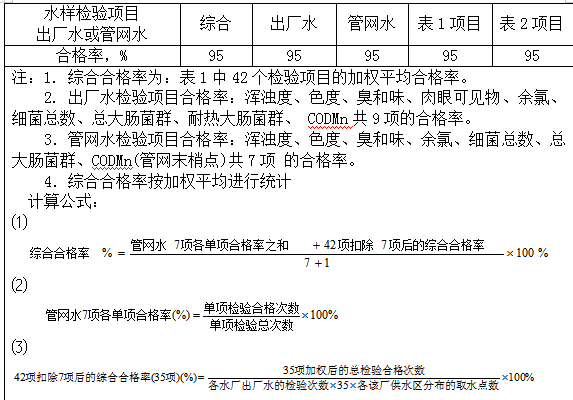 6.8??水質(zhì)檢驗(yàn)項(xiàng)目合格率要求見表4。