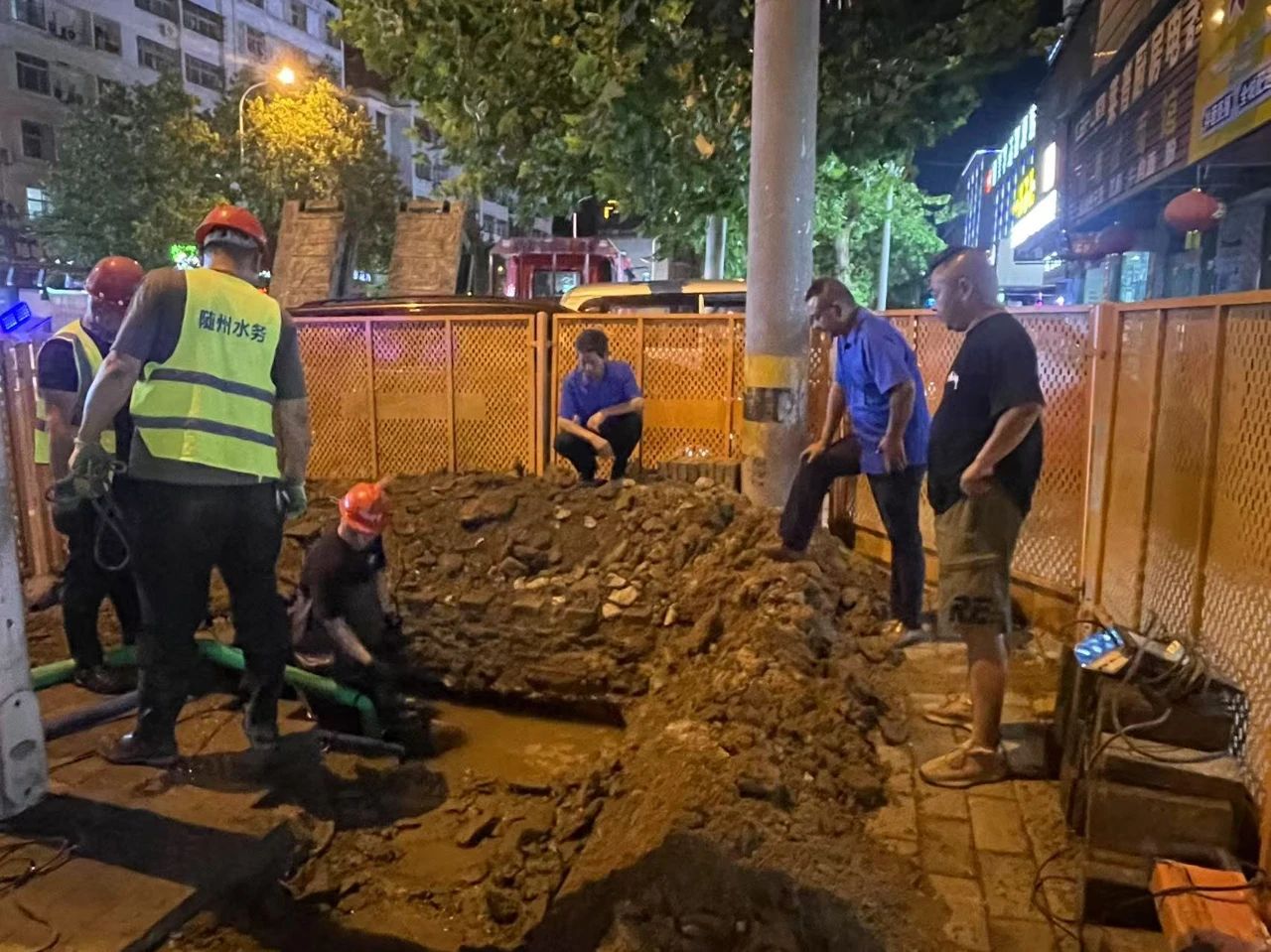 “管道早一分鐘搶修好,市民就早一分鐘恢復(fù)用水。沒有條件創(chuàng)造條件也要上!”針對(duì)現(xiàn)場(chǎng)情況,周新和他的“黨員突擊隊(duì)”隊(duì)員們憑借多年來(lái)積累的豐富經(jīng)驗(yàn),制定了靈活有效的搶修方案。周新身體力行,突擊隊(duì)員們分工協(xié)作,搶修工作有條不紊地展開:關(guān)閉閥門、設(shè)置圍擋、清除覆土、查找漏點(diǎn)、抽排積水、修補(bǔ)管道、試壓通水……