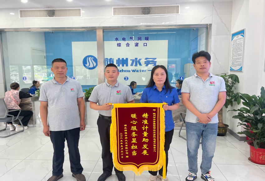“精準計量助發(fā)展,暖心服務顯擔當”,6月5日,一面鮮紅的錦旗被鄭重地送到隨州市水務集團城市供水有限公司客戶服務中心。湖北四通專用汽車有限公司總經理帶隊專程致謝,對公司免費提供的水表檢定服務給予高度贊揚,表達誠摯謝意。這面錦旗不僅是企業(yè)對隨州水務優(yōu)質服務的認可,更是隨州水務以 “五免五心” 惠企政策為企業(yè)發(fā)展助力的生動體現(xiàn)。
