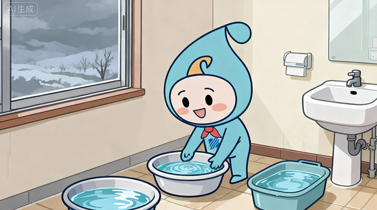 家中長期無人居住時(shí),建議將室內(nèi)或室外總閥關(guān)閉,打開最低處的水龍頭將水管內(nèi)的積水排空,以免水管凍裂。建議用戶在低溫天氣期間適當(dāng)儲(chǔ)水備用,避免因供水設(shè)施上凍造成生活不便。